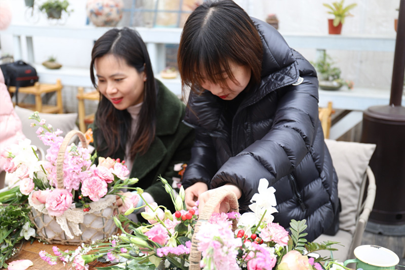 Ô˶¯Ô¼Çëרҵ»¨»ÜÔ°ÒÕʦÏÖ³¡ÊÚ¿ÎÖ¸µ¼£¬ÏÈÈÝ»¨µÄÆ·ÖÖ¡¢»¨µÄÌØÕ÷µÈ֪ʶ£¬×Ðϸ½â˵ÔõÑùÖÆ×÷Ò»ÀºÌõÀíÃ÷È·¡¢ÀǼ®ÓÐÖµĻ¨Êø£¬²¢ÊÖ°ÑÊÖ½ÌÊڲ廨ʵ²ÙÒªÁì¡£