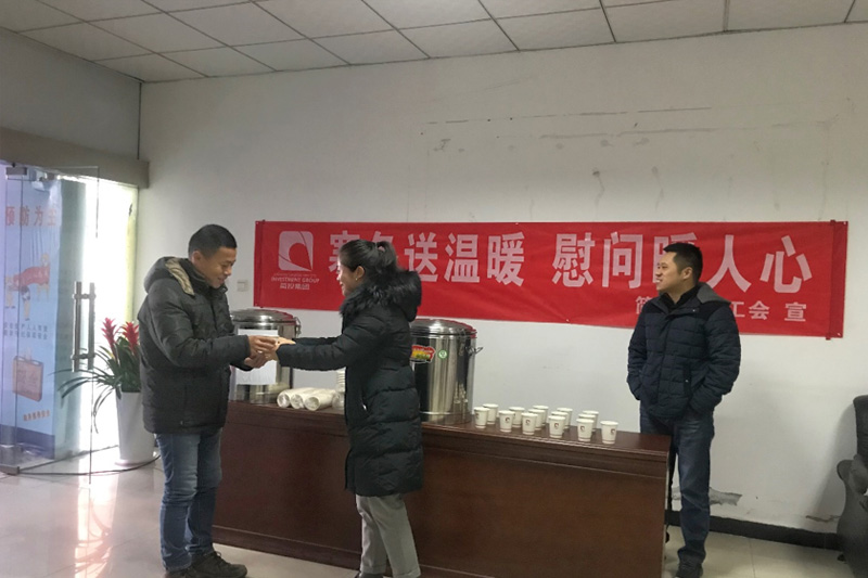 工会事情职员还为食堂事情职员、礼仪、保安等后勤服务职员,送去保暖亵服,谢谢他们默默无闻地辛勤支付。正是后勤服务职员坚守岗位、辛勤的支付,才有了热乎乎、香馥馥的饭菜和温馨、恬静、清静的办公情形。同时,集团公司工会在公司一楼大厅提供红糖姜茶,为员工驱散冬日的寒意。一杯杯热乎乎的姜汤,寄托着集团公司对职工们炙热的眷注,和对职工们辛勤支付地谢谢。